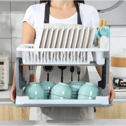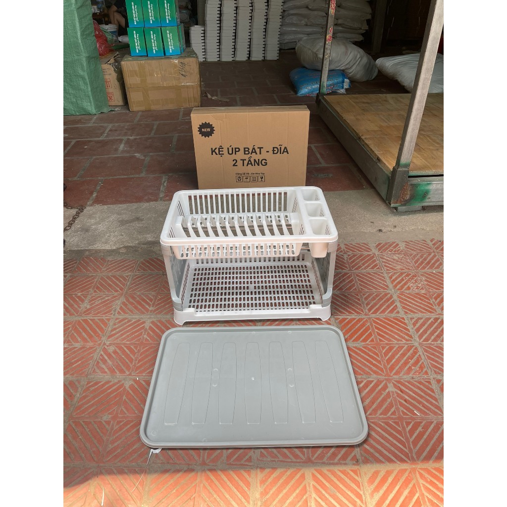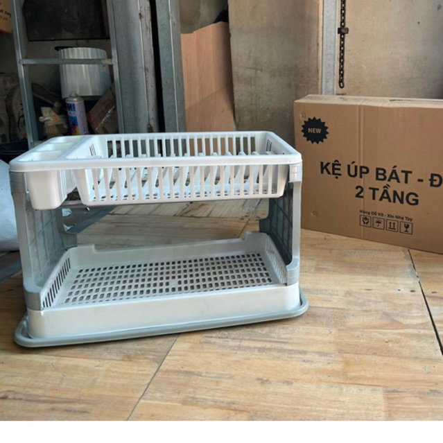 Kệ úp chén bát đĩa 2 tầng có chỗ thoát nước