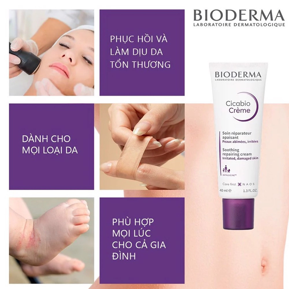 Kem dưỡng ẩm Bioderma Cicabio Crème giúp dưỡng ẩm, phục hồi da – Hộp 40ml