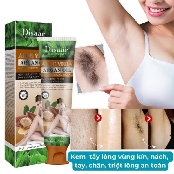 – Tên Sản phẩm: Kem Tẩy Lông Disaar Aloe Vera, tẩy lông vùng kín, nách, tay, chân, triệt lông an toàn không đau rát.