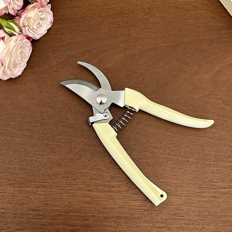 Lưỡi kéo làm bằng thép không gỉ, bén và chắc chắn, giúp cắt dễ dàng cành cây nhỏ, hoa, rau quả.