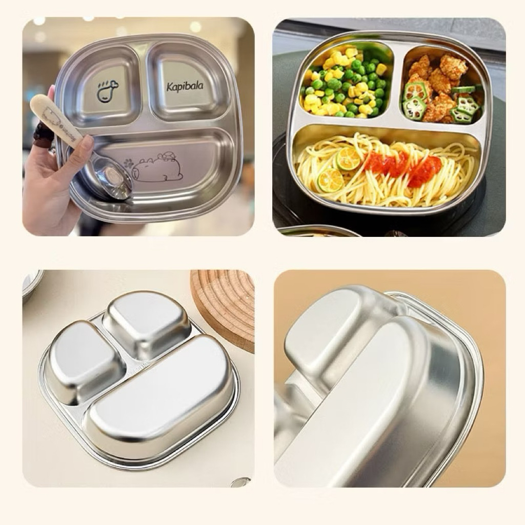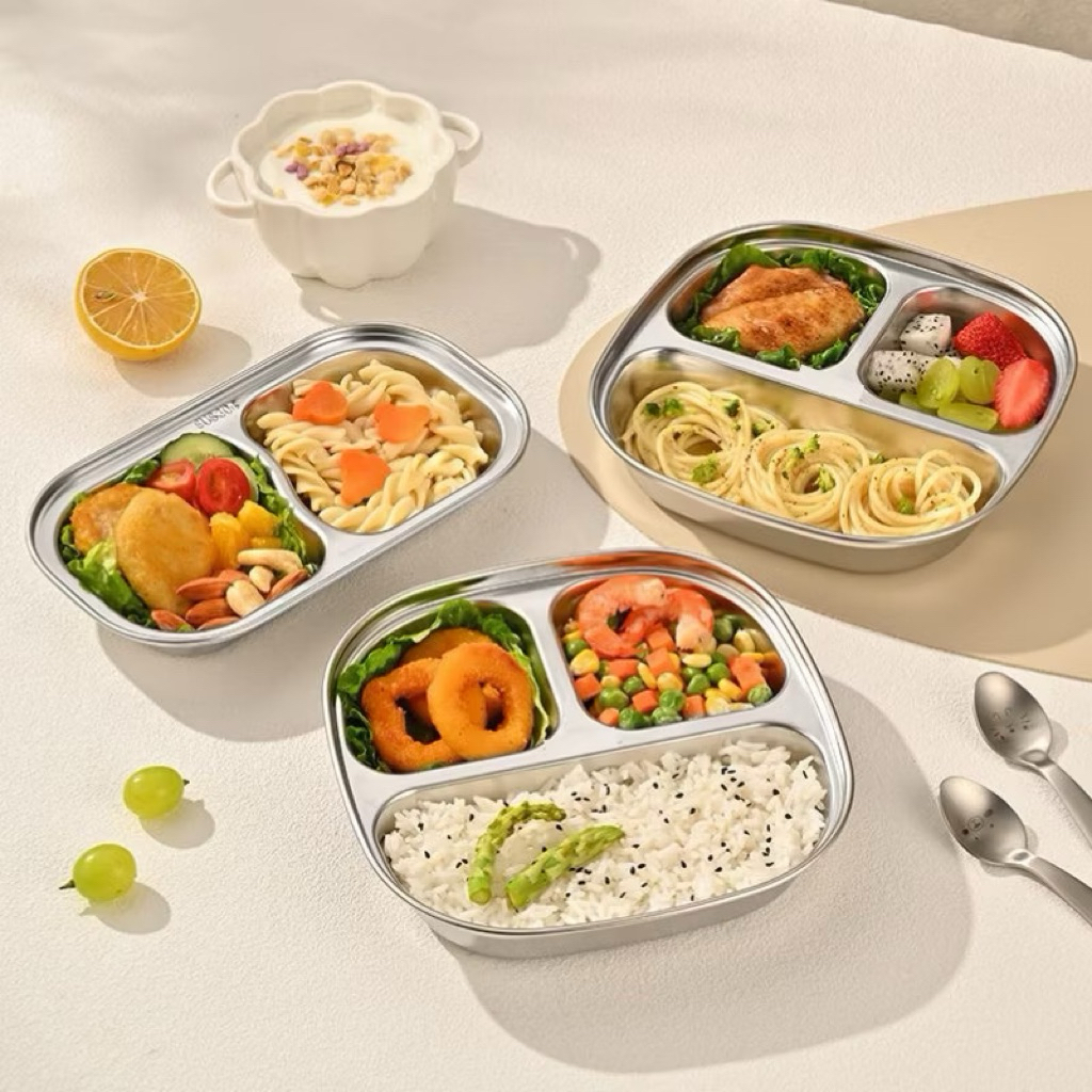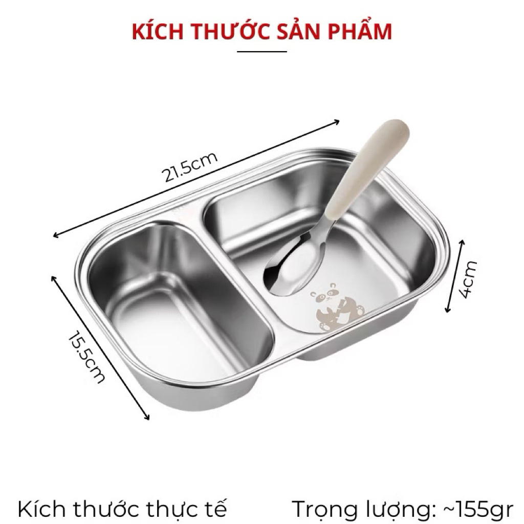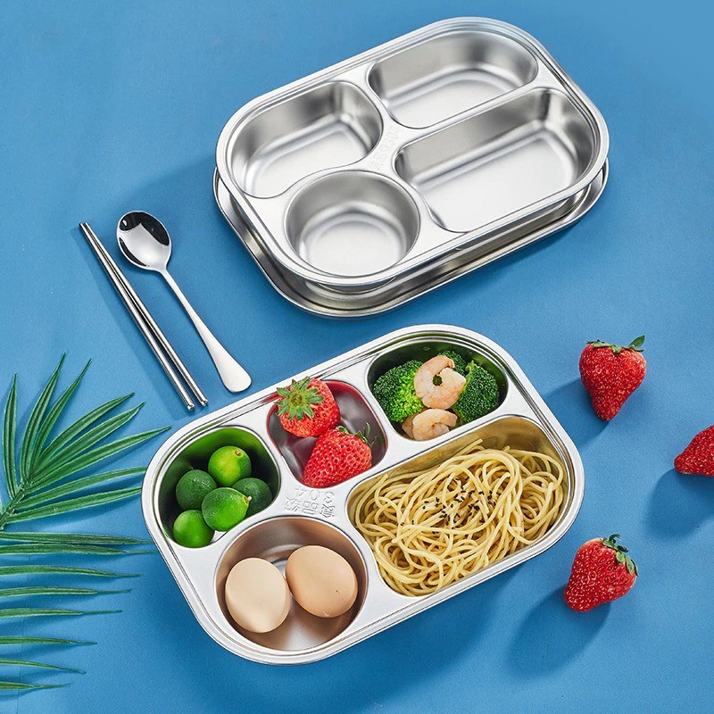Khay cơm inox chia ngăn khay cơm phần cho bé tập ăn dặm bé đi học