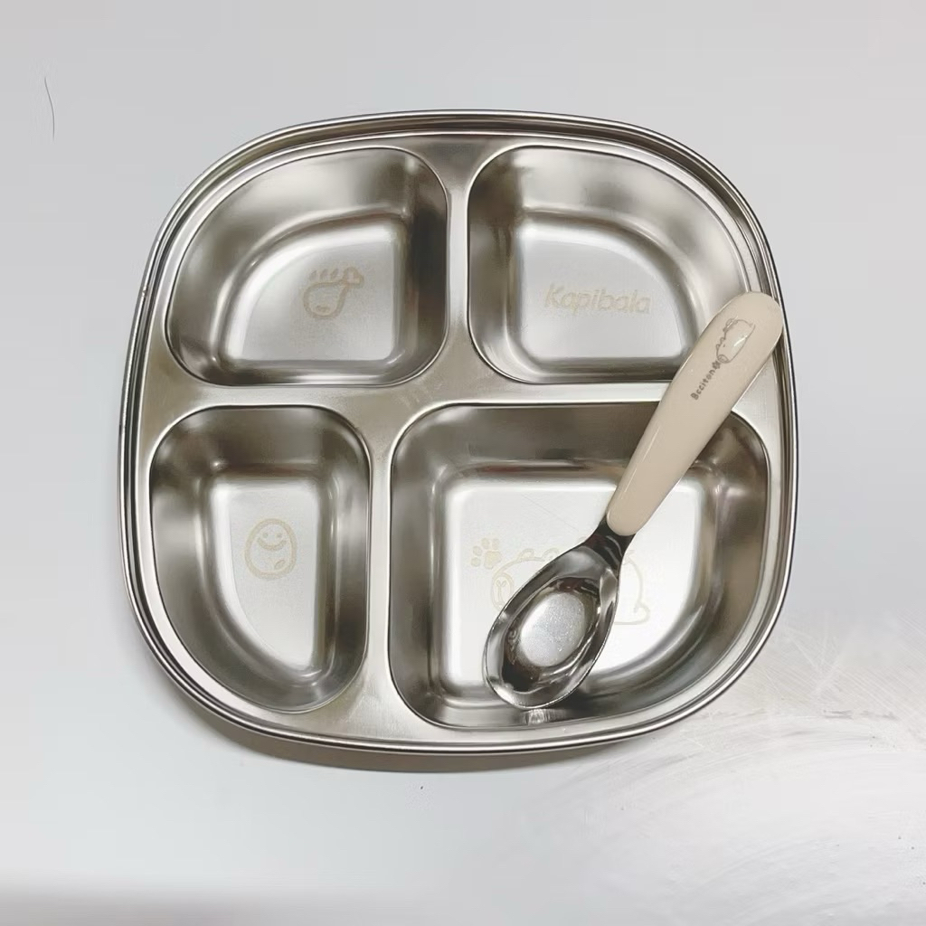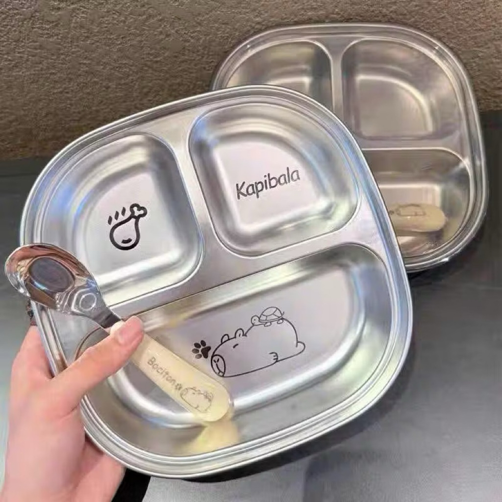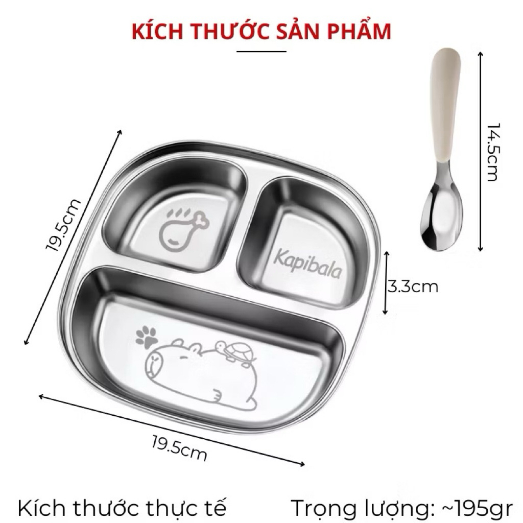 Khay cơm inox chia ngăn khay cơm phần cho bé tập ăn dặm bé đi học