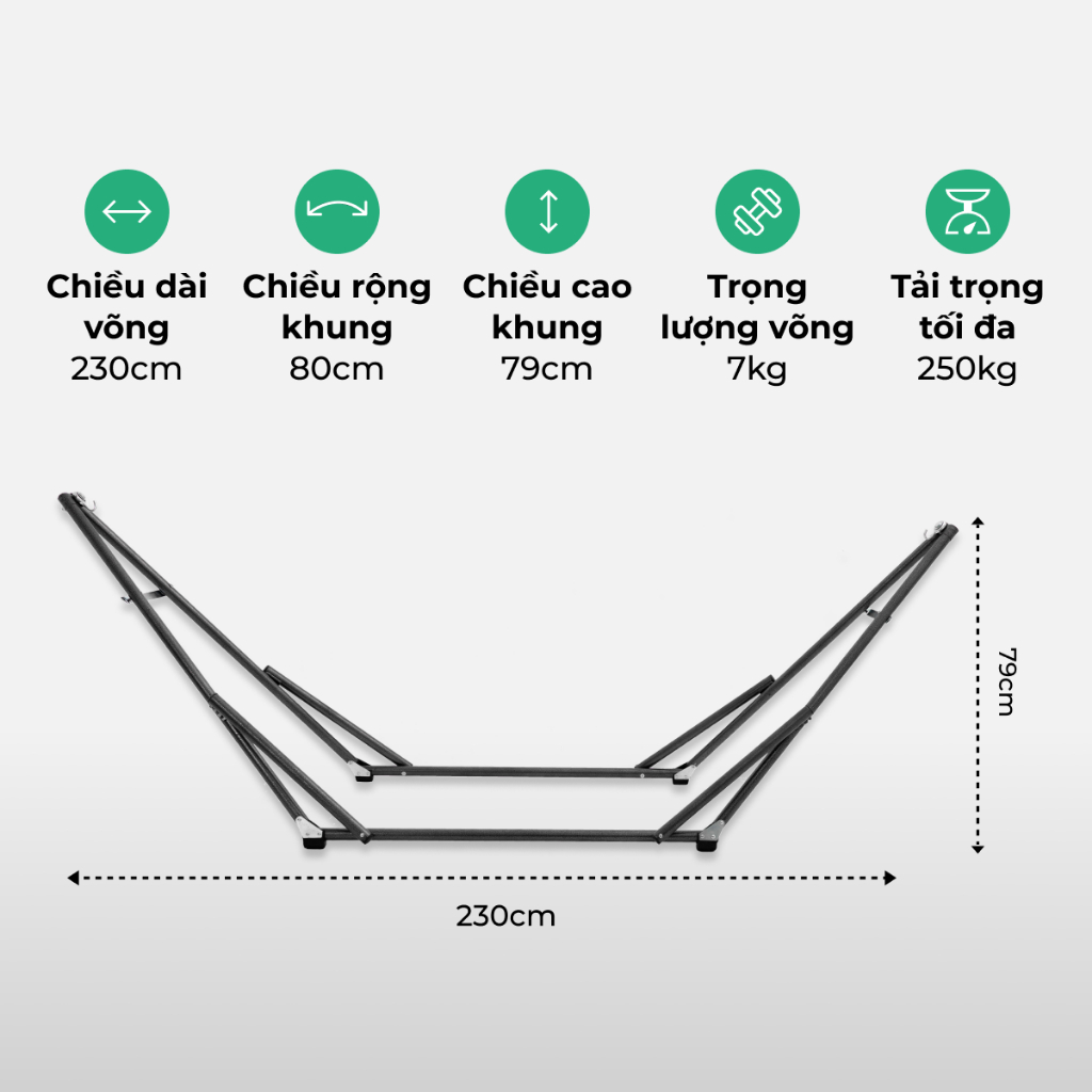 Lưới rộng 6 tấc , dài 2.3m : 2 người lớn 80-90 kí nằm vừa