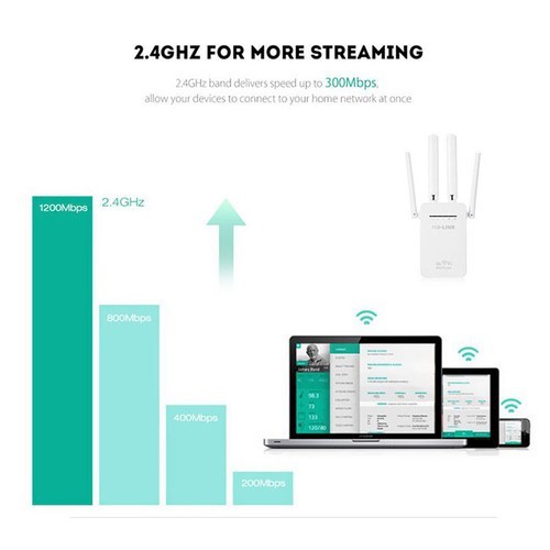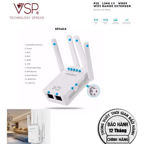 - Bộ kích sóng wifi PIX-LINKvới thiết kế 4 ăng-ten giúp tín hiệu WiFi trở nên mạnh hơn, ổn định và cải thiện việc nhận cũng như truyền dữ liệu, mở rộng mạng cục bộ không dây (LAN) .Ngoài ra,thiết bị kích wifinày còn giúp tăng cường độ phủ sóng và tín hiệu mạng hiện có, hỗ trợ chuẩn Wi-Fi 802.11ac, 802.11 b / g / n thiết bị Wi-Fi, bộ định tuyến và AP cùng với chế độ chuyển mạch vô cùng đơn giản.Thiết bị khuếch đại sóng wifi LV-WR09với ổ cắm nguồn có khả năng tháo lắp/xoay chiều, không chiếm quá nhiều diện tích khi cắm vào ổ điện.