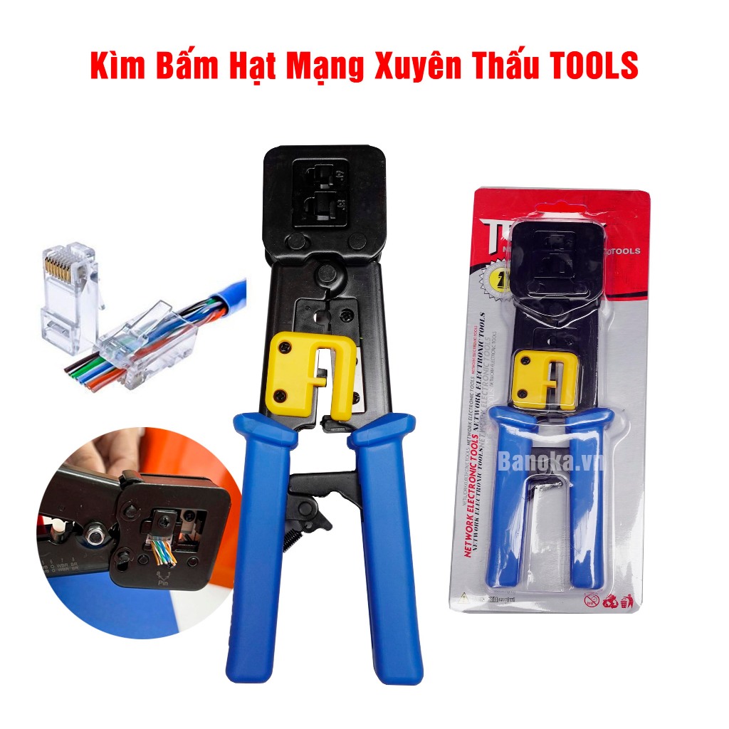 Bấm đầu RJ45: Kìm bấm mạng xuyên thấu được sử dụng để bấm đầu RJ45 vào dây cáp mạng, tạo ra kết nối vững chắc và chính xác.