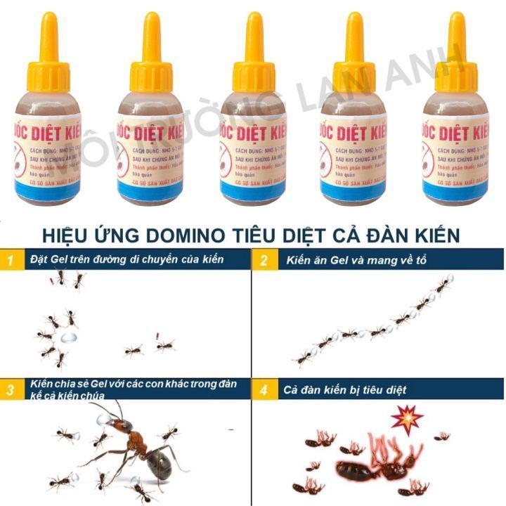 Nhỏ 5 – 7 giọt vào đường đi hoặc nơi trú ẩn của kiến, gián sau khi chúng ăn mồi thuốc sẽ lan truyền và chết cả đàn. Mọi người nhớ là nhỏ vào nơi có kiến khoảng 2 – 3h sau mới lau nha, mình lau nhanh quá kiến nó có kịp thông báo cho nhau đâu ạ.