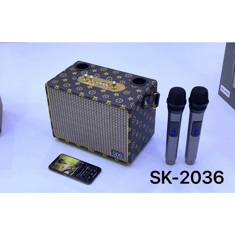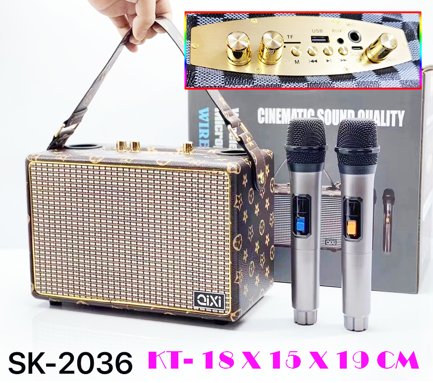 Loa Bluetooth Có Sẵn 2 Micro Không Dây Chính Hãng Qixi Model SK 2036 Loa Di Động Mini Chuyên Hát Karaoke Nghe Nhạc Rất Hay, Kiểu Dáng Vintage – Âm Thanh Vòm 360 – Bass Uy Lực