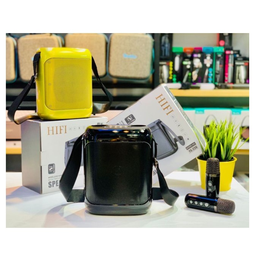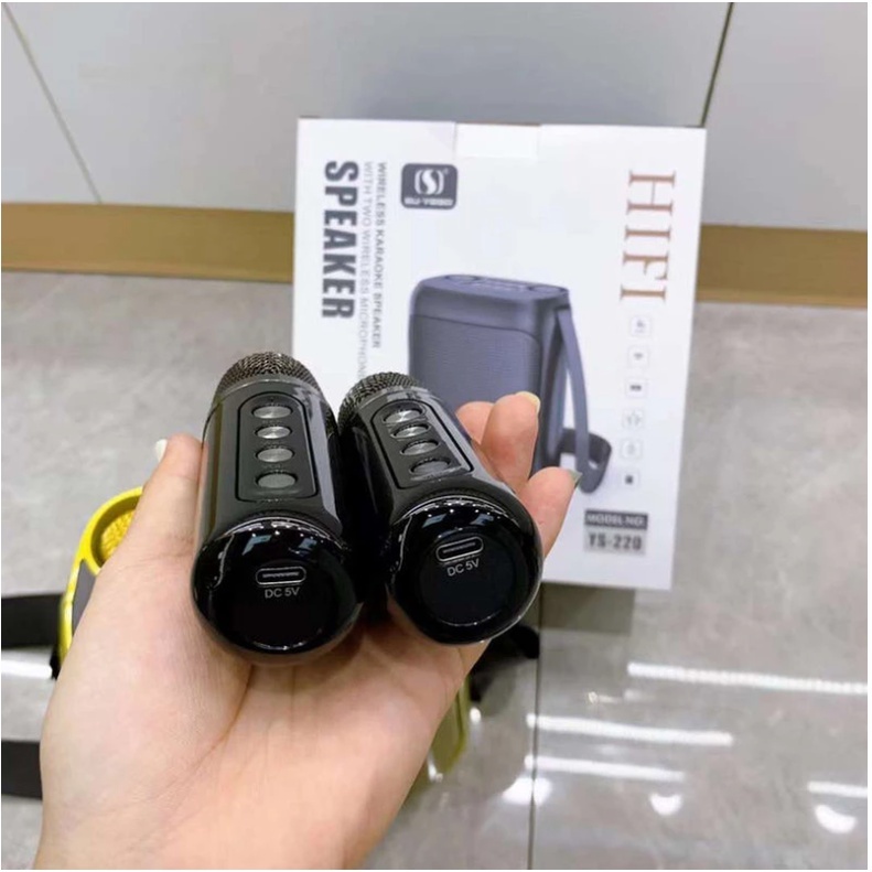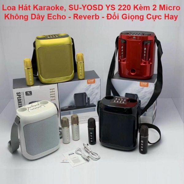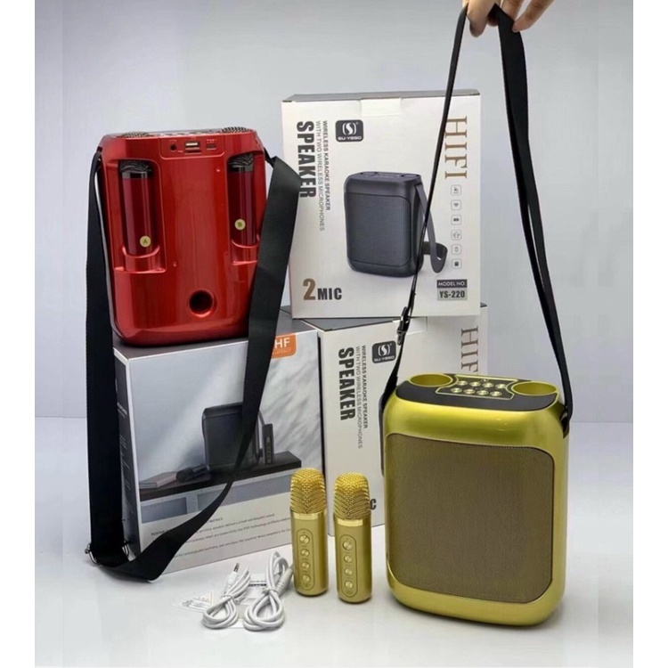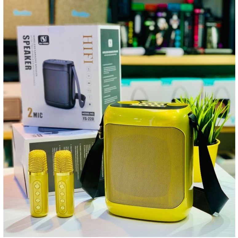 Loa karaoke mini YS-220 là dòng loa bluetooth karaoke hiện đại. Thiết kế được nhỏ gọn, chức năng rất đa dạng và tương đối đầy đủ. Bạn có thể dùng để nghe nhạc, làm loa trợ giảng, hoặc hát karaoke giải trí khi cần thiết.
