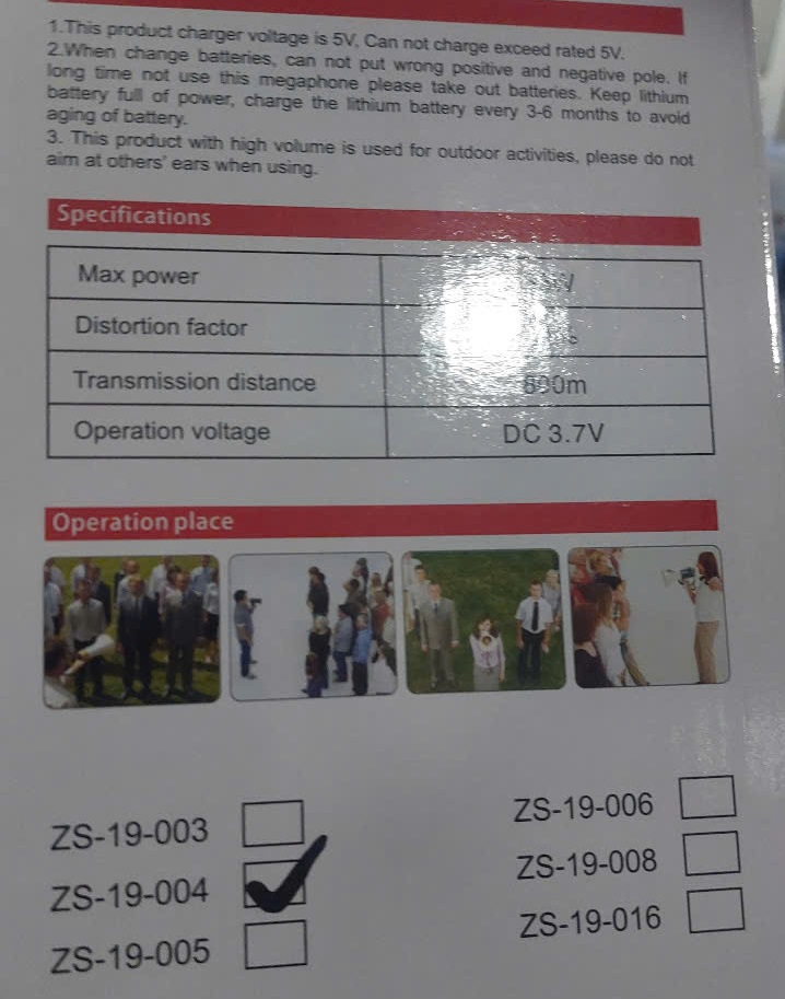 Loa phóng thanh cầm tay Zansong ZS-16-004 khá là tiện lợi vì có thể mang theo và sử dụng liên tục, sử dụng nguồn điện là pin Sạc nên các bạn chỉ cần mang theo cóc sạc là có thể sử dụng mọi lúc mọi nơi mà không cần đến nguồn điện trực tiếp. Loa thường được dùng làm loa bán hàng, loa truyền thông, loa thông báo ở xưởng, làng xã hoặc những khu dân cư nơi đông người.