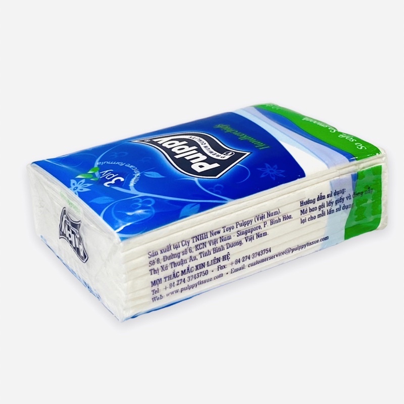 + Khăn giấy bỏ túi Pulppy 3 lớp sản xuất tại Việt Nam trên dây chuyền công nghệ cao, với 3 lớp mềm mại, mịn màng hứa hẹn mang lại cảm giác tốt nhất cho người sử dụng.