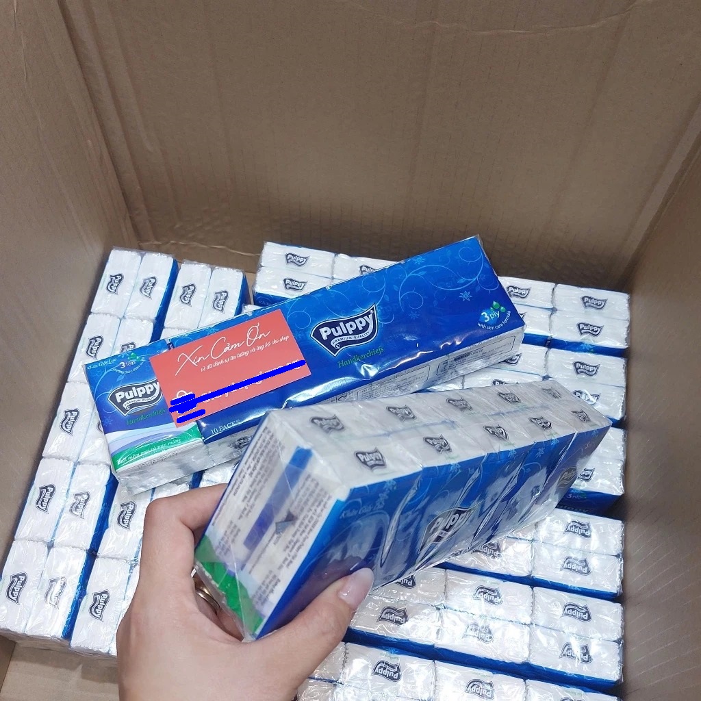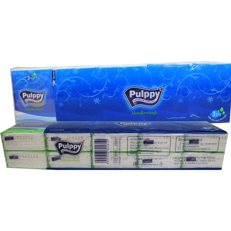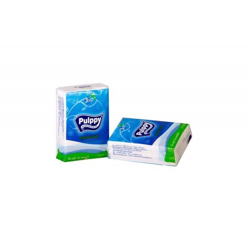 – Tên sản phẩm: Khăn Giấy Bỏ Túi Pulppy 3 Lớp 10 Gói x 10 Tờ