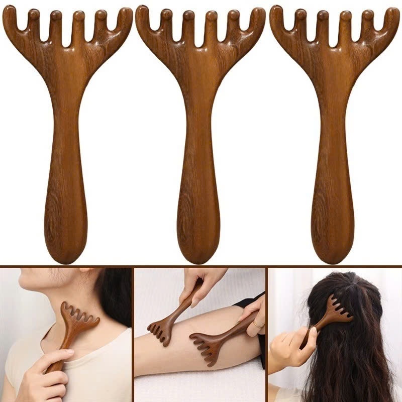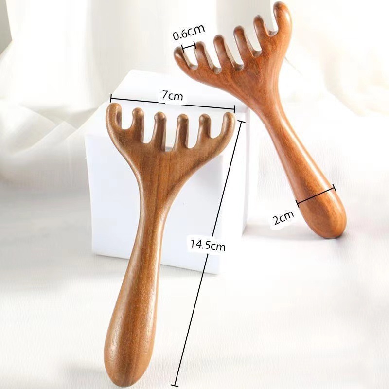 ✔️Lược gỗ đàn hương với 6 móng tròn, chuyên dụng để massage và kích thích da đầu