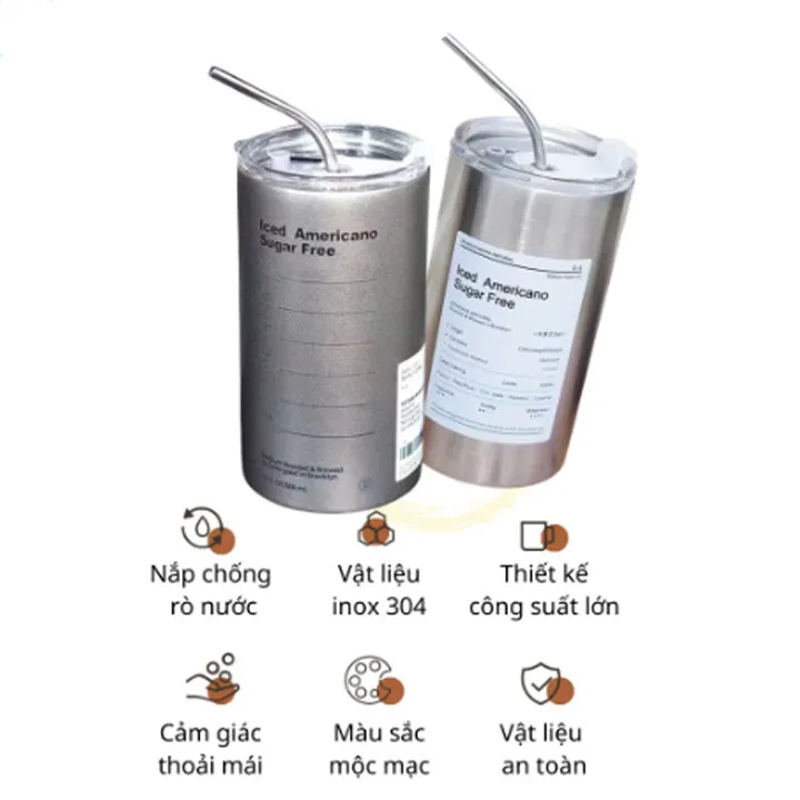 THÔNG TIN CHI TIẾT :Cốc Uống Nước Giữ Nhiệt 600ML Mini Ly Giữ Nhiệt Inox 304 Có Ống Hút Ly Uống Coffee Iced Americano