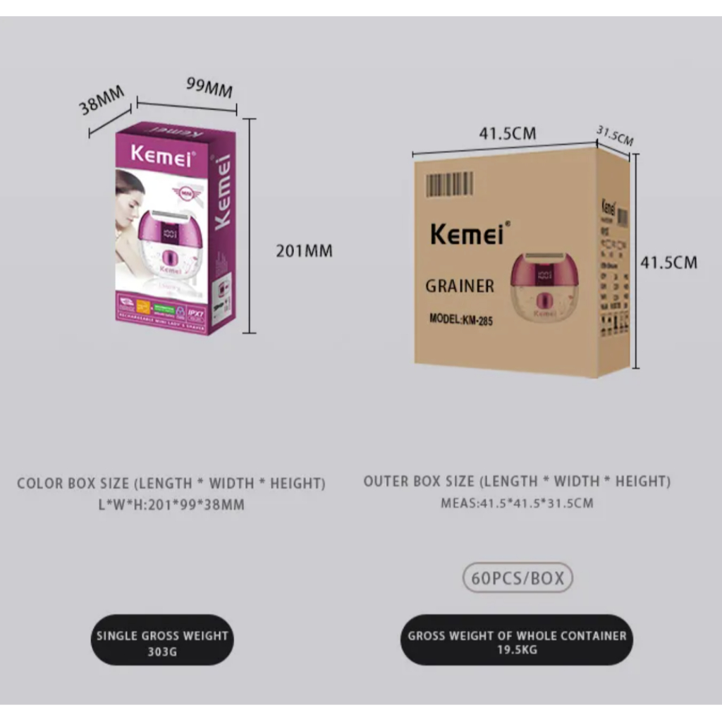 Máy Cạo Lông Toàn Thân Cao Cấp Kemei KM-285 Công Nghệ Chống Nước IXP7///DL