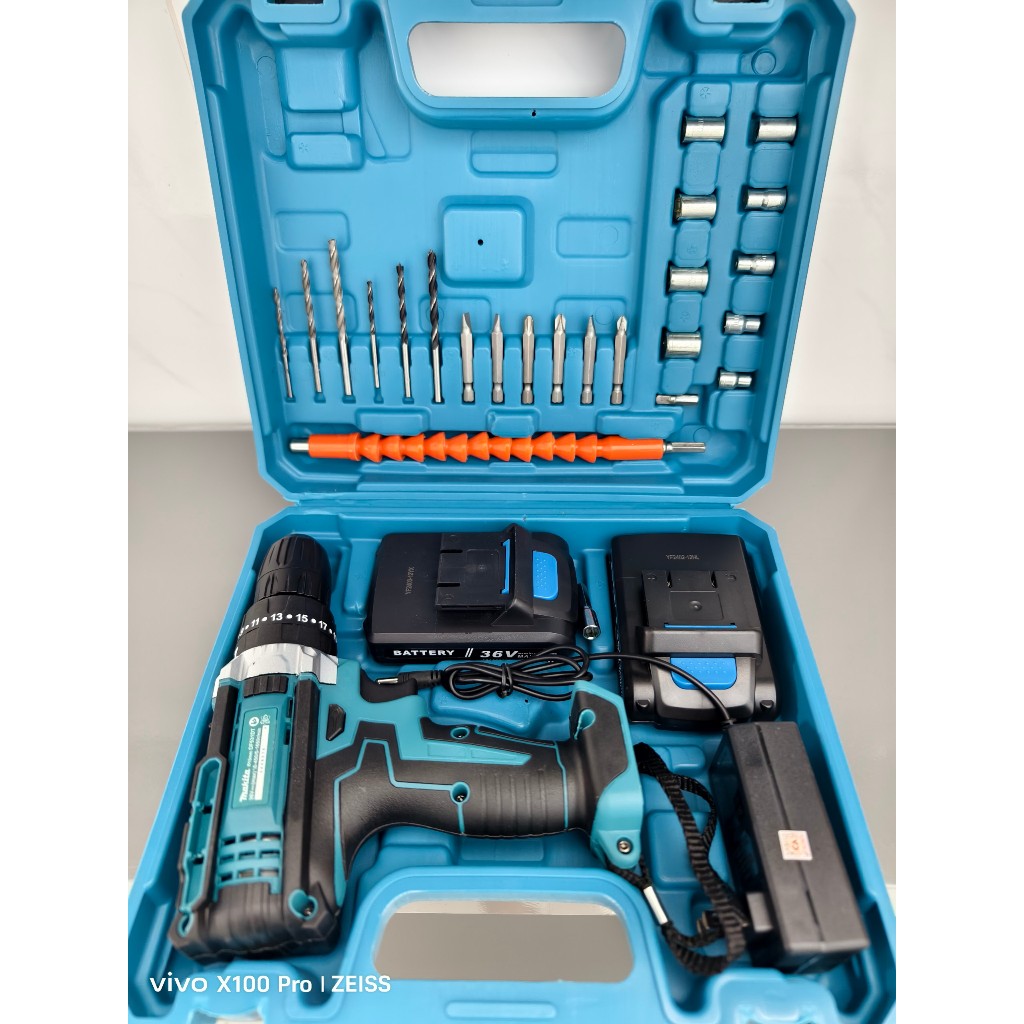 - Sản phầm gồm: 1 máy, 2 pin, 1 sạc, 25 chi tiết, hộp nhựa đựng