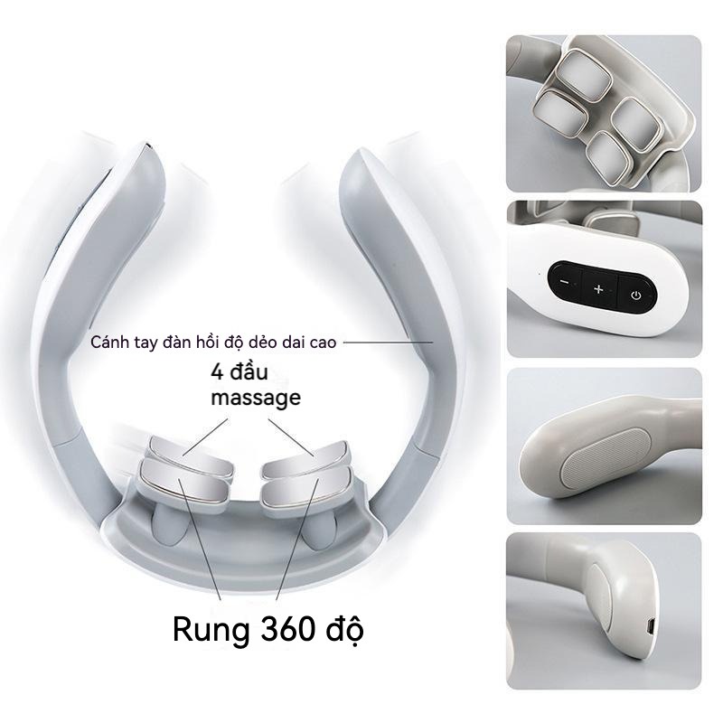 Máy Massage Đốt Sống Cổ 4D với 4 Đầu Massage, 12 Mức Điều Chỉnh, Tặng Kèm Máy Massage Cầm Tay Mini