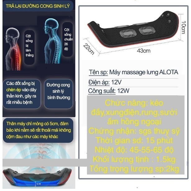 – Với hệ thống nén khí của máy mát xa lưng Alota giãn nở đa chiều để nâng cơ kéo giãn các đốt xương sống.