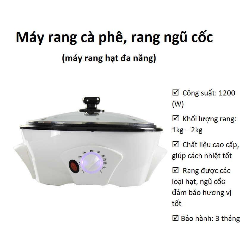 - Công suất rang: 5-10 chén (1kg – 2kg)
