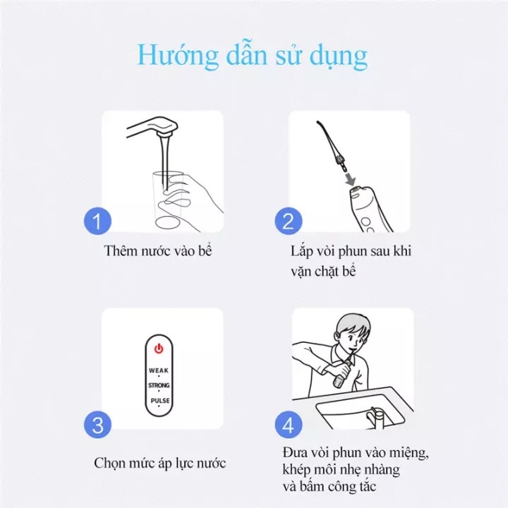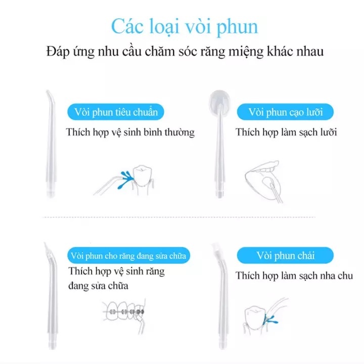 ✔️ 4 đầu tăm nước: ” 2 đầu tiêu chuẩn / 1 đầu nha chu giảm áp lực / 1 đầu vệ sinh mũi ”