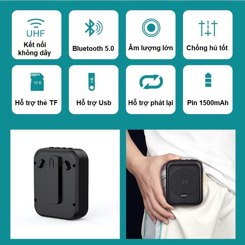 Giao diện đầu vào: Thẻ nhớ TF, USB, MIC, Ổ cắm sạc