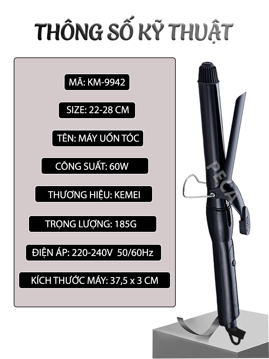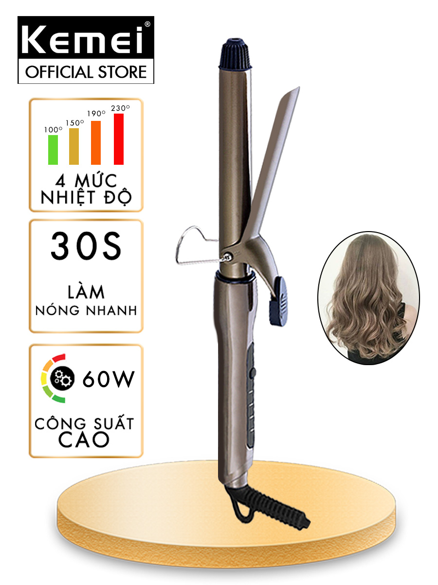 MÁY UỐN TÓC CAO CẤP KEMEI KM-9942 ĐIỀU CHỈNH 4 MỨC NHIỆT ĐỘ, DÂY ĐIỆN XOAY 360 ĐỘ ( GIAO MÀU NGẪU NHIÊN )