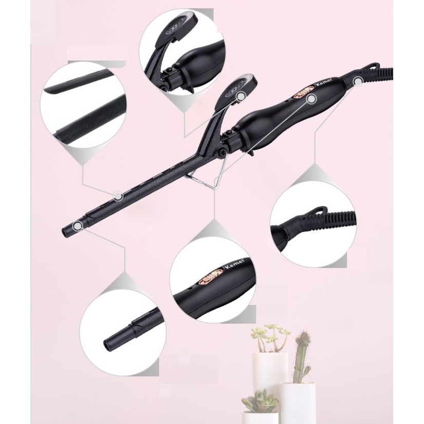 – Máy uốn tóc KM S207 phi 12mm ( xoăn mì tôm ) chỉ gồm có 1 trục duy nhất , cùng với thanh kẹp giữ tóc.