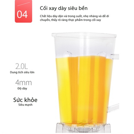 .Với thiết kế công suất của động cơ lên tới 3000W, thể tích cối xay 2 lít, thiết kế với dao 6 lưỡi nên chiếc máy này có thể xay được nhiều nguyên liệu một cách nhanh chóng, hiệu quả, giúp bạn tiết kiệm thời gian hơn. Đặc biệt là xay các nguyên liệu cứng như đá viên mà không làm ảnh hưởng tới chất lượng chiếc máy này. Chiếc máy được rất nhiều quán kinh doanh sữa đậu nành tin dùng, vì nó có khả năng xay đậu nành nguyên hạt, thành phẩm không để lại lợn cợn, không phải lọc qua bộ lọc nào Sử dụng chiếc máy xay đa năng này để mở quán kinh doanh bạn sẽ thu lại được nhiều lợi nhuận hơn, tiết kiệm thời gian hơn, thành phẩm ngon hơn chất lượng hơn.