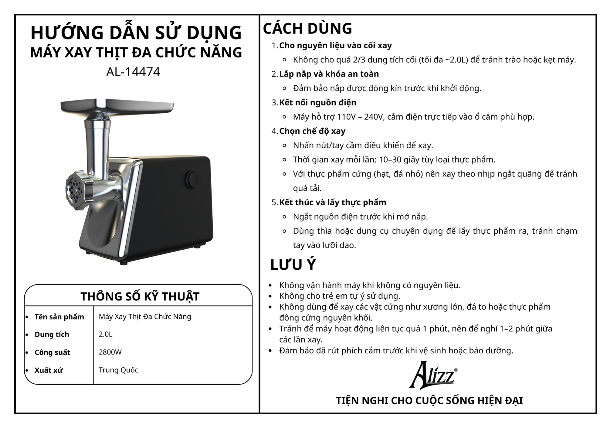 Máy Xay Thịt Đa Chức Năng ALLZZ – AL 14474