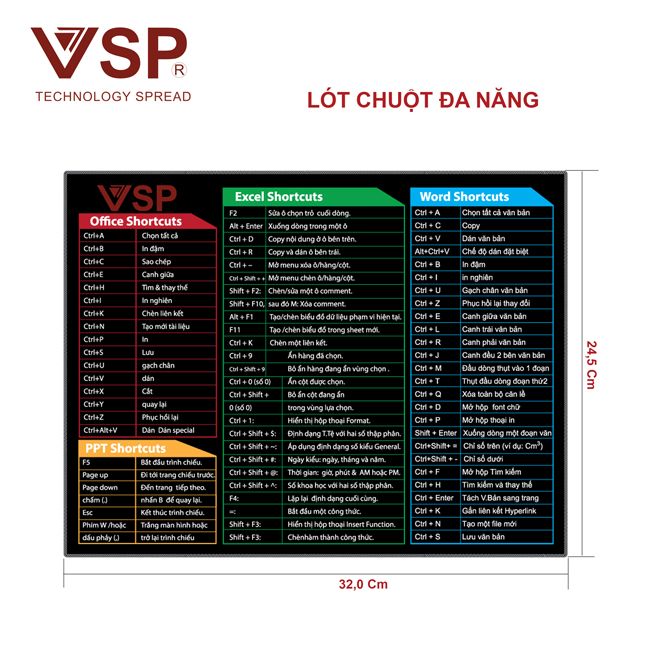 Kích thước lớn của tấm lót bàn là một lựa chọn lý tưởng cho tất cả nhân viên văn phòng và người học, phù hợp với hầu hết các máy tính để bàn và máy tính xách tay.Hình ảnh phím tắt của miếng lót chuột phần lớn có thể cải thiện hiệu quả công việc của bạn trong sử dụng văn phòng, Nó cũng thích hợp để chơi game.