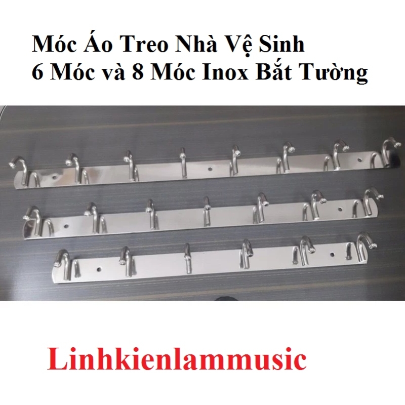 Móc Áo Treo Nhà Vệ Sinh 8 Móc Inox Bắt Tường (Loại Mỏng)
