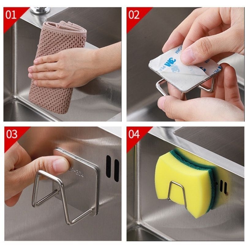 Tấm treo chất liệu Inox 304 bền bỉ được thiết kế dán chậu, đá, kính, gỗ treo dụng cụ rửa chén, đồ dùng nhà bếp