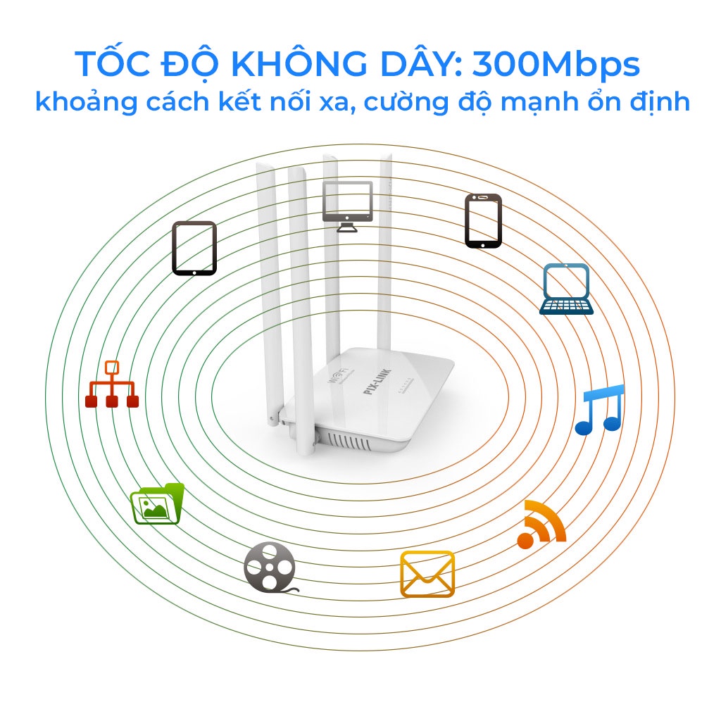 Cục phát wifi 4 râu PIX-LINK LV-WR08, Modem wifi 300Mbps là sự kết hợp của các thiết bị có dây và không dây được thiết kế cho các yêu cầu kết nối mạng cho các mạng văn phòng gia đình và doanh nghiệp.