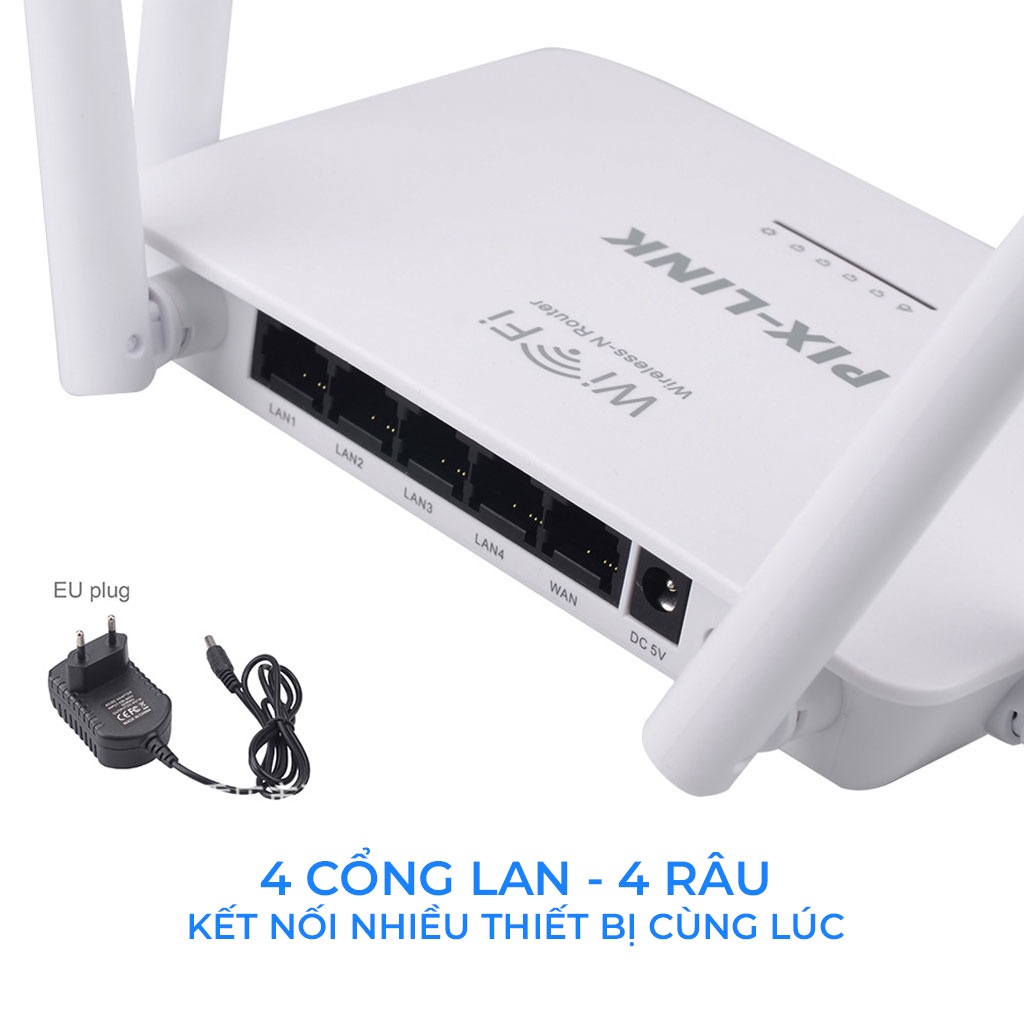 Cục phát wifi 4 râu PIX-LINK LV-WR08, Modem wifi 300Mbps cường độ sóng khỏe, phủ sóng rộng – Hàng chính hãng