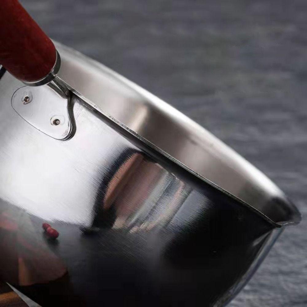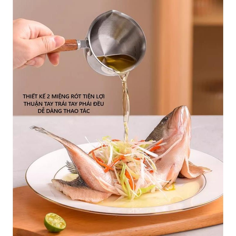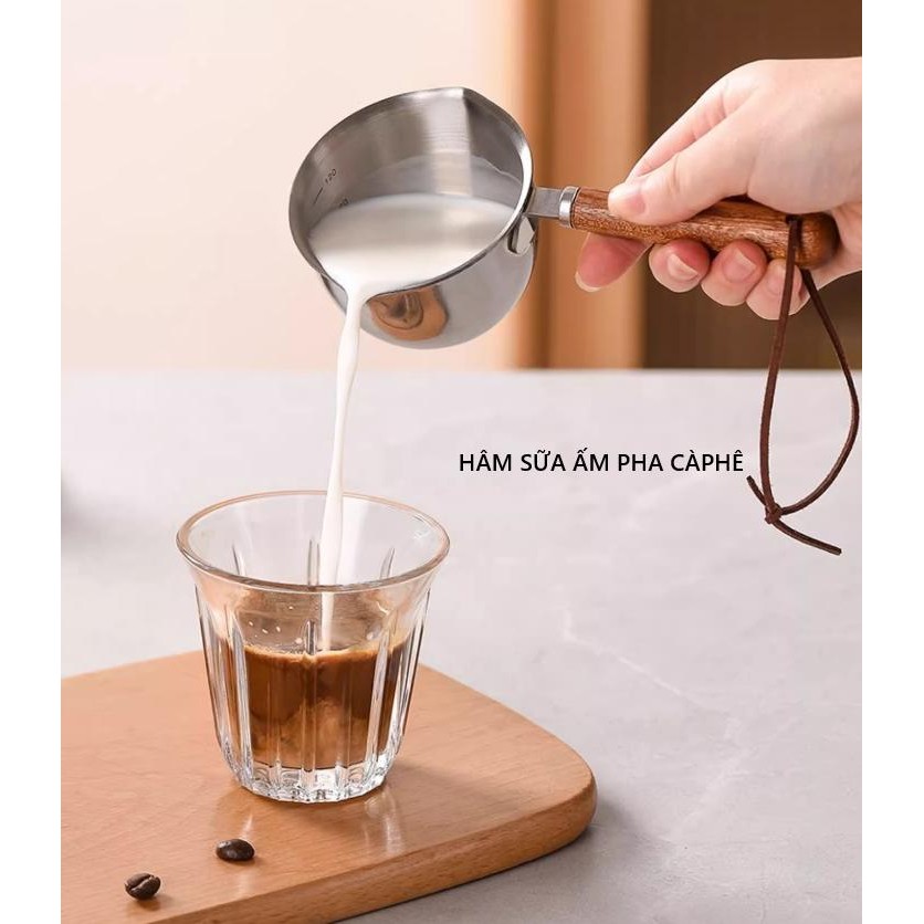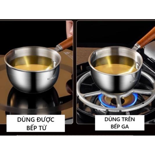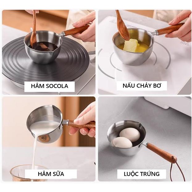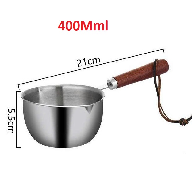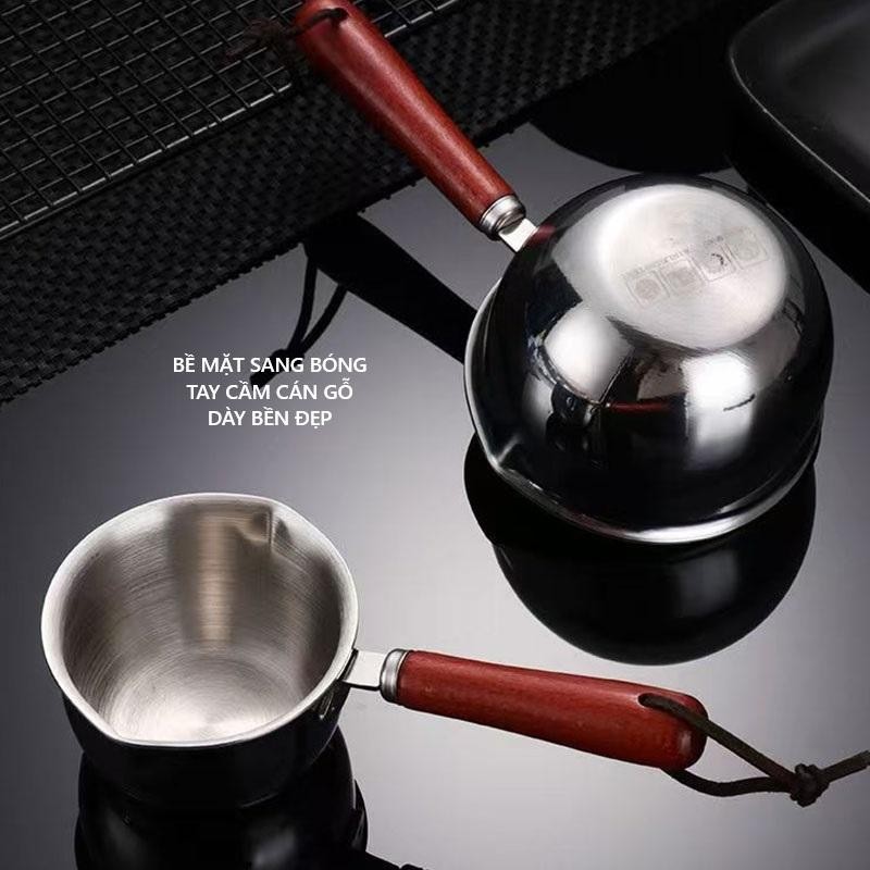 Nồi/ Chảo đựng dầu nóng, Nấu Sữa Thép Không Gỉ Tay Cầm Gỗ