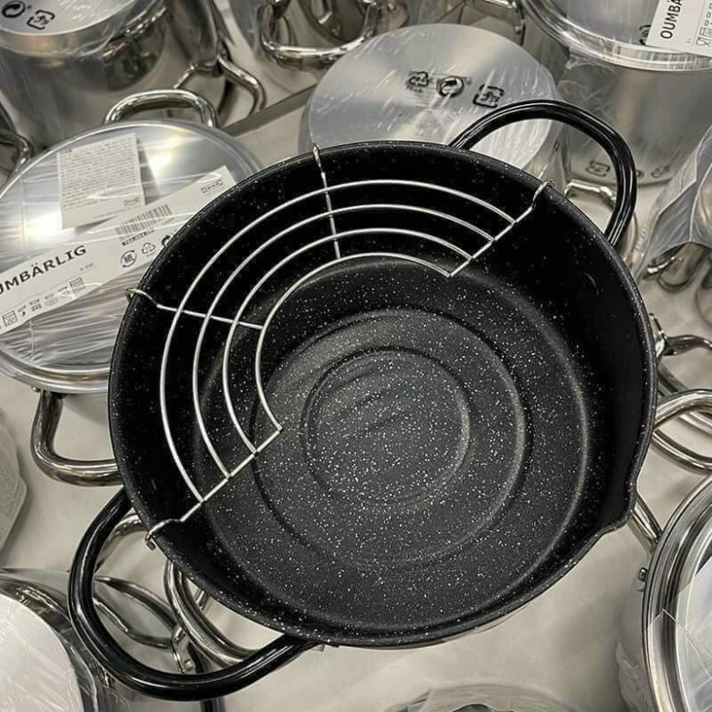 Nồi được làm bằng chất liệu hợp kim cao cấp, có khay để thức ăn ráo dầu, bắt nhiệt nhanh, sử dụng được cả bếp ga và bếp từ, bếp hồng ngoại.