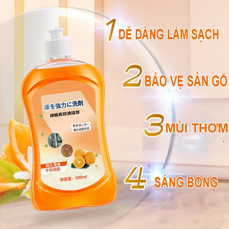 Nước lau sàn nhà hương cam dịu nhẹ diệt khuẩn, Nước tẩy sàn chai 500ml tẩy sạch mọi vết ố bẩn cứng đầu