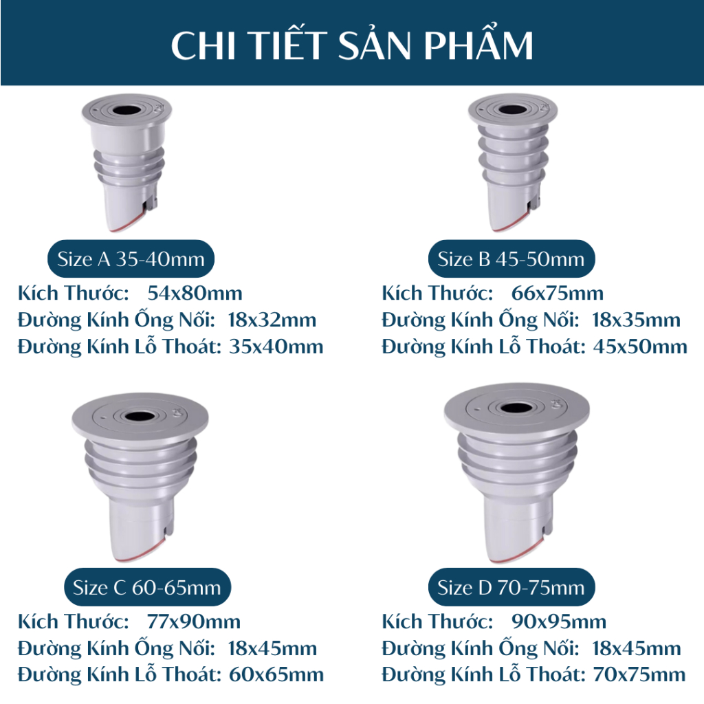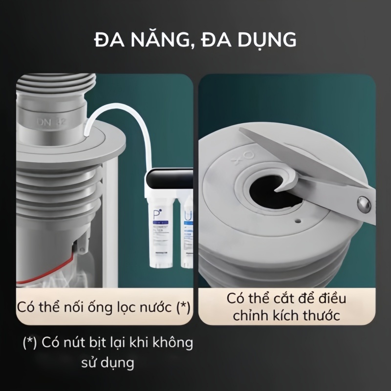 – Tương thích nhiều loại ống thoát nước: Phù hợp với nhà vệ sinh, bồn rửa bát, thoát sàn phòng tắm, thoát nước ban công…