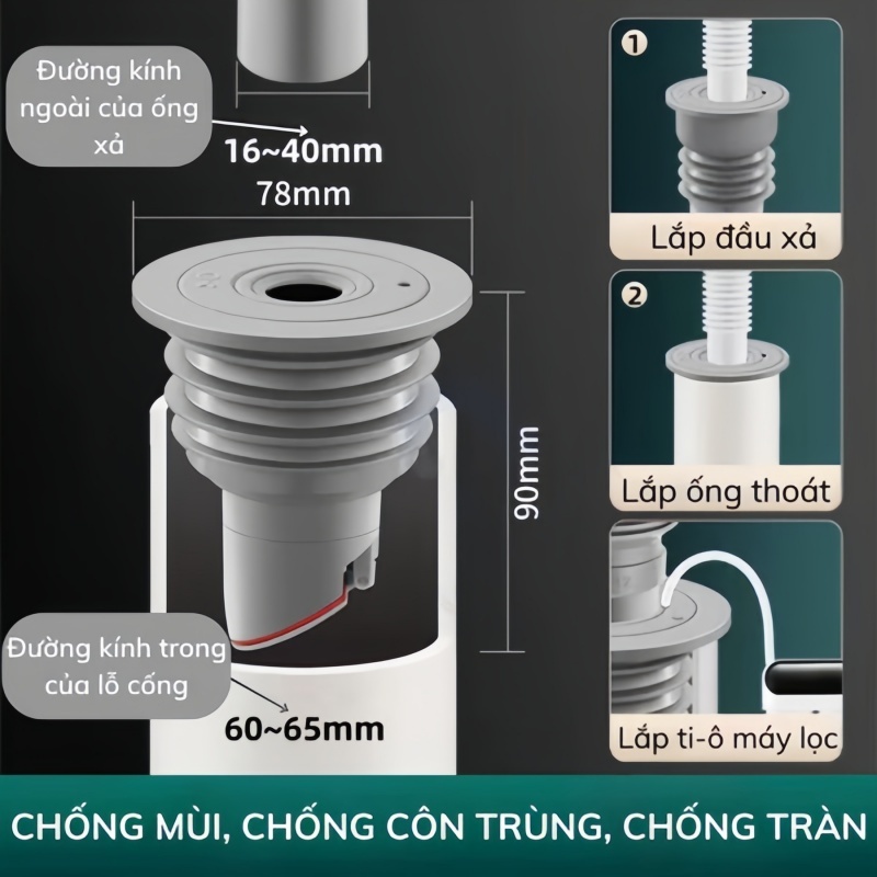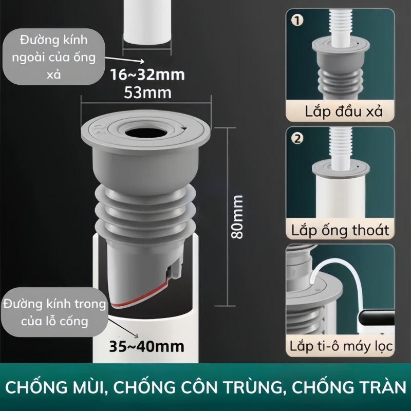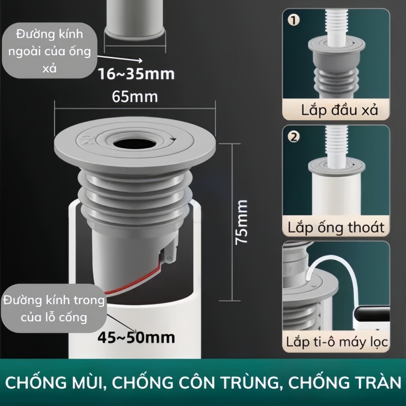 Chống côn trùng, gián, chuột bò lên từ đường ống, đảm bảo vệ sinh.