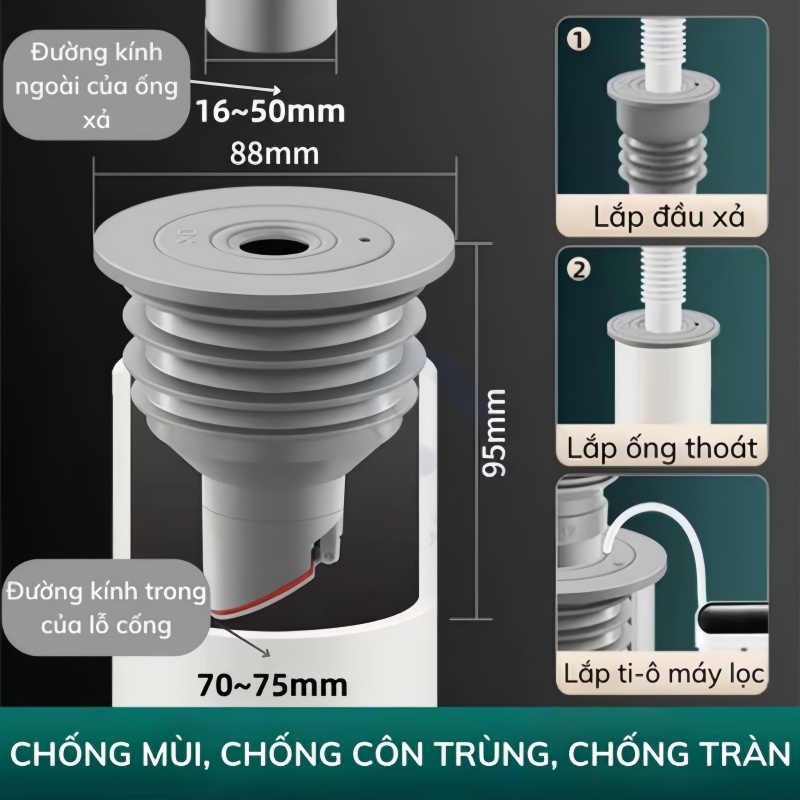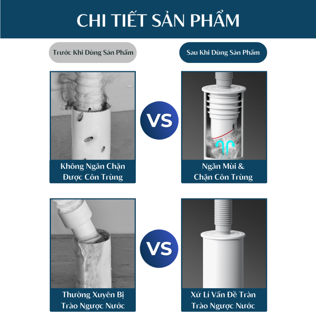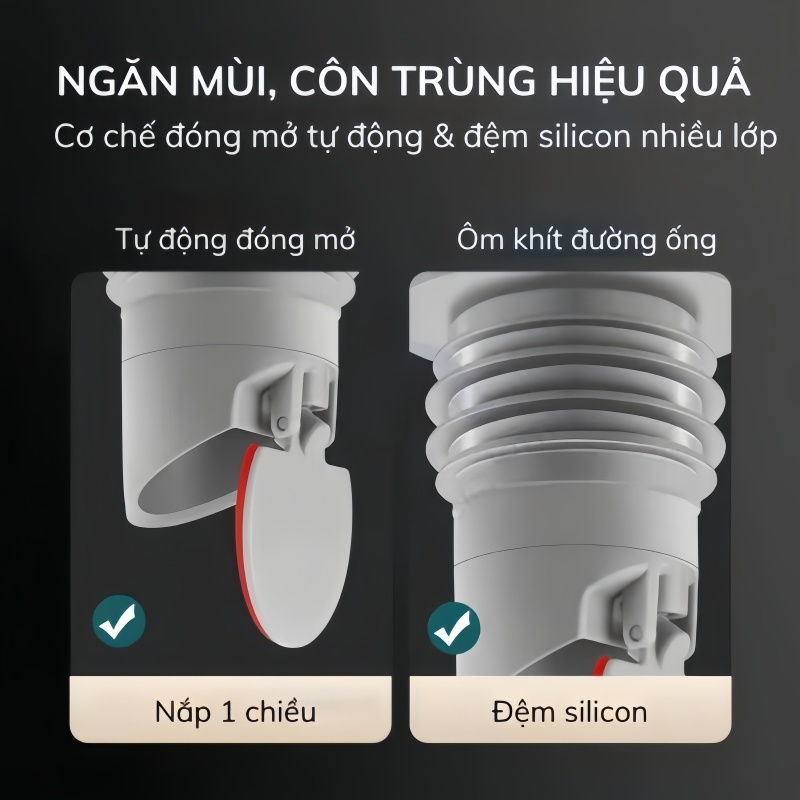 Ngăn mùi hôi từ cống thoát nước bốc lên, giúp không gian luôn sạch sẽ, thoáng mát.