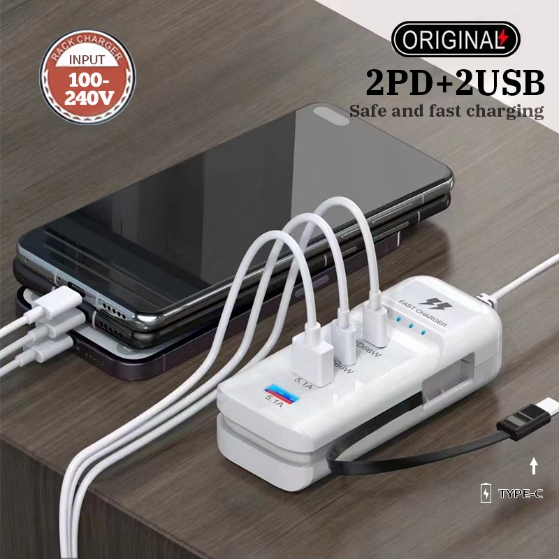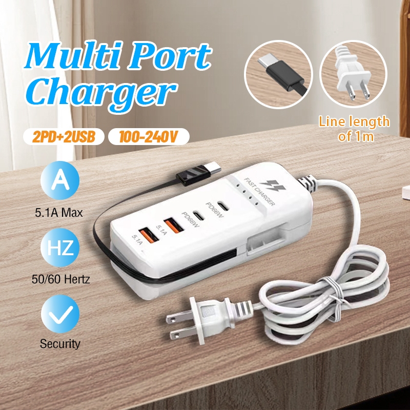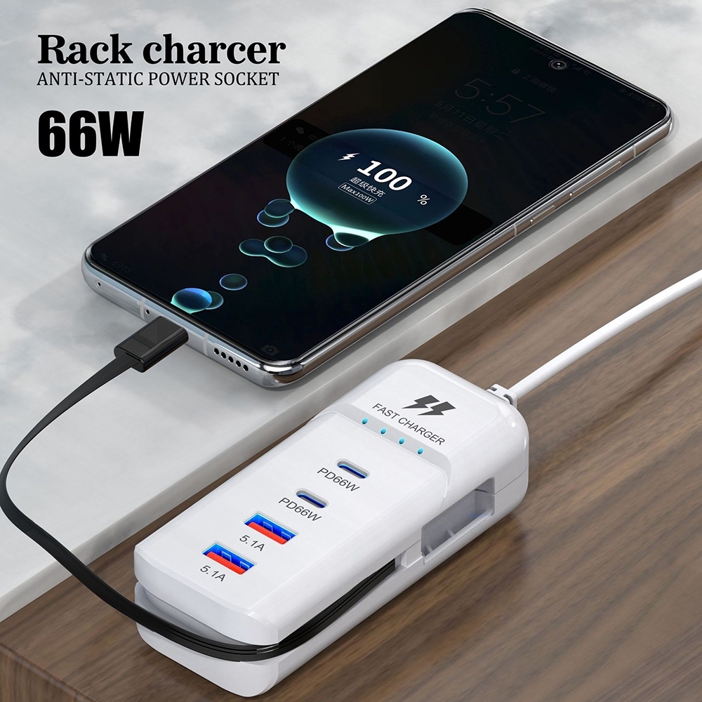 – Bộ sạc nhanh bao gồm: 2 cổng PD66W, 2 cổng USB, 1 cáp type C