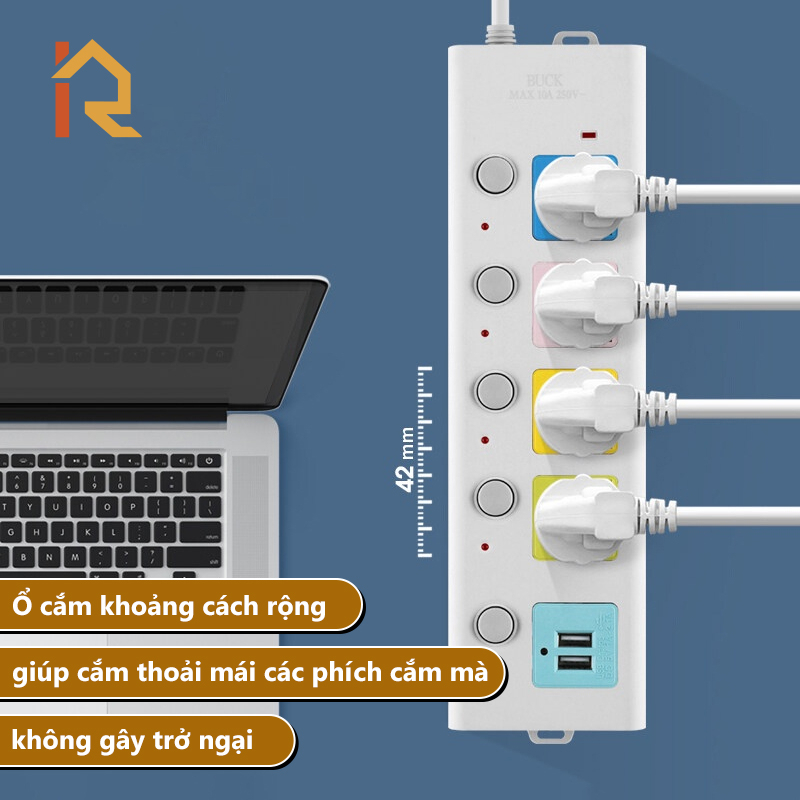 – Ổ cắm khoảng cách rộng, giúp cắm thoải mái các phích cắm to mà không gây trở ngại