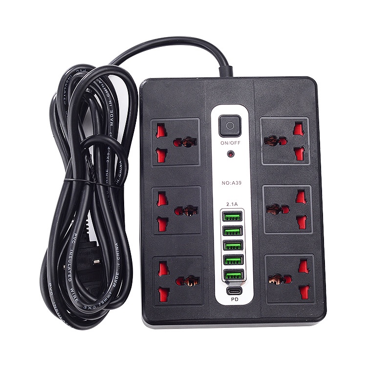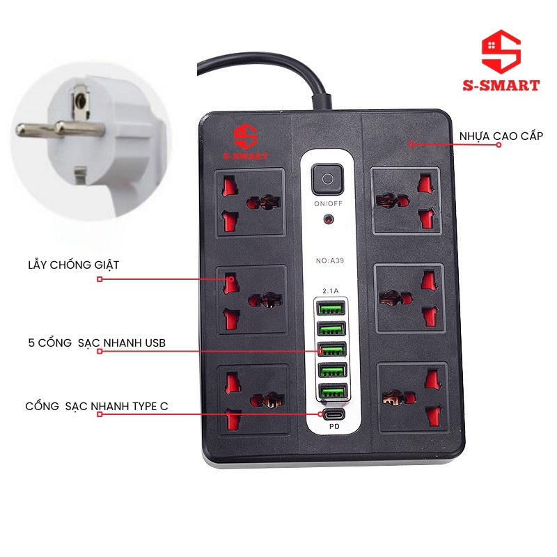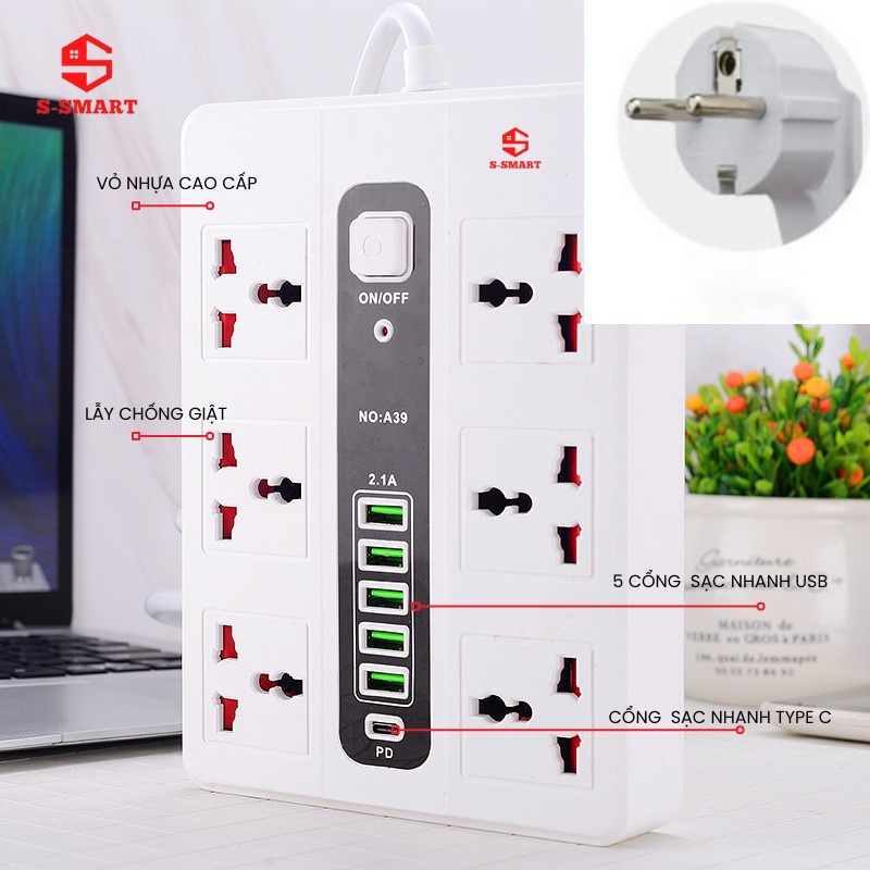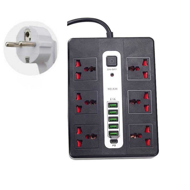 ✅✅Ổ cắm điện đa năng K39 6 Ổ cắm tích hợp 5 Cổng usb sạc 1 Cổng sạc PD – Ổ cắm điện Fujitoshi K39 Cao cấp, Được thiết kế 6 ổ cắm theo tiêu chuẩn châu âu do đó mà bạn có thể cắm được tất cả các loại phích cắm trên thị trường tất cả các tiêu chuẩn của các nước đều có thể sử dụng được. Đạt tiêu chuẩn cao về an toàn, 6 ổ cắm được trang bị bảo vệ các đầu ổ cắm trẻ em không thể cho tay vào các lỗ đảm bảo an toàn cho trẻ nhỏ