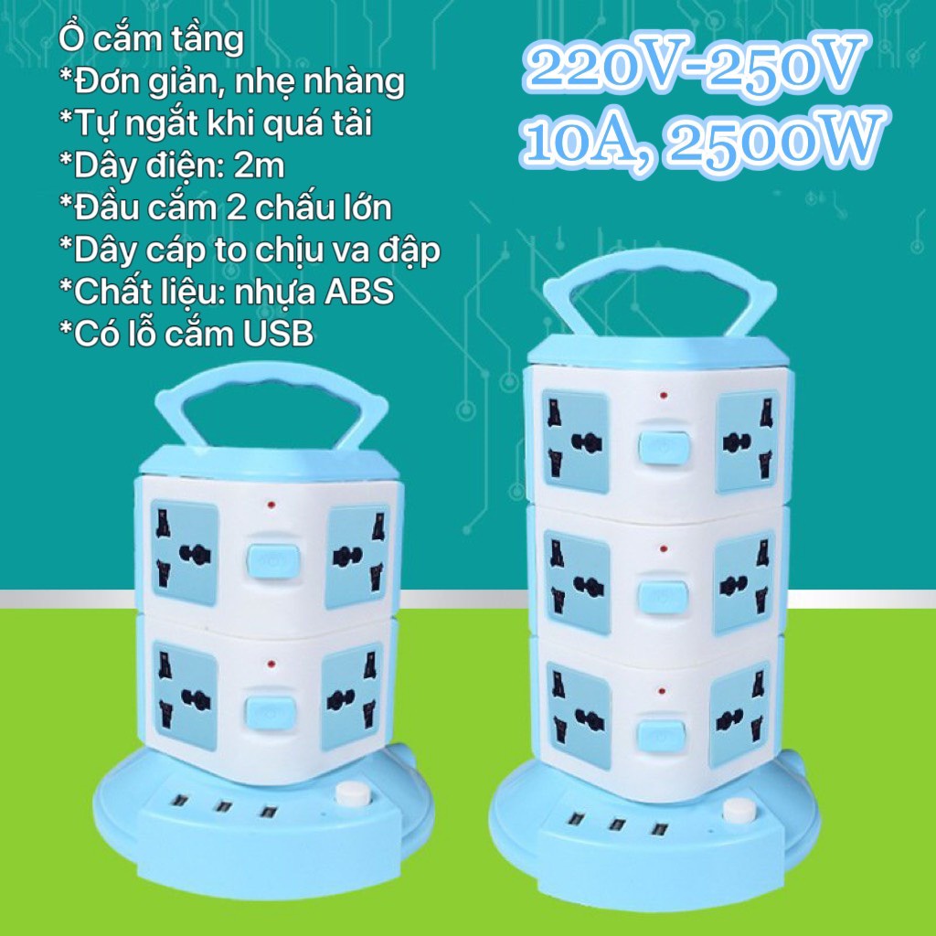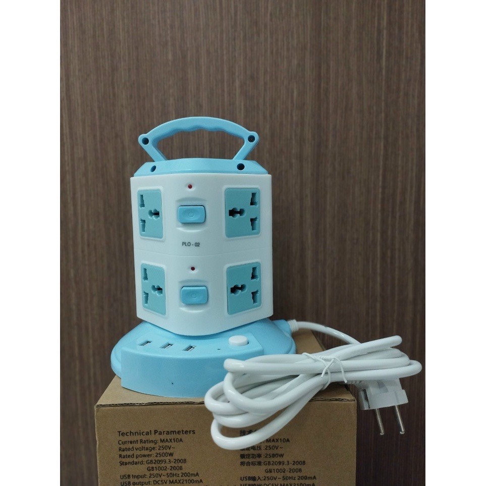 Ổ điện 2 tầng Plo-02. có 3 cổng USB