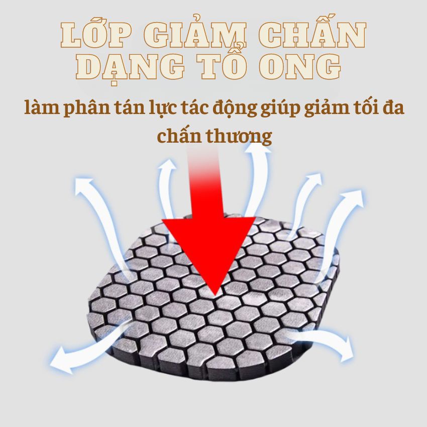 - Đệm tổ ong: Cấu trúc tổ ong 3D giúp phân tán lực va đập, giảm thiểu chấn thương.