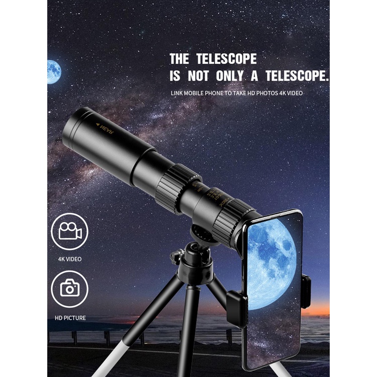 – Bộ sản phẩm: 1 ống nhòm, 1 kẹp điện thoại, 1 chân đế tripod, 1 dây đeo, 1 khăn lau, 1 túi đựng bằng vải, 1 giấy hướng dẫn sử dụng, 1 hộp đựng kèm theo