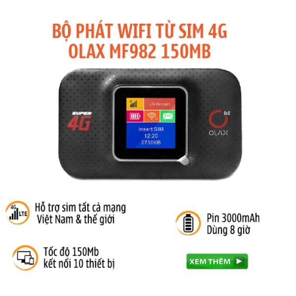 Phát Wifi Từ Sim 4G OLAX MF982 LCD. (đặt trong ngày)
