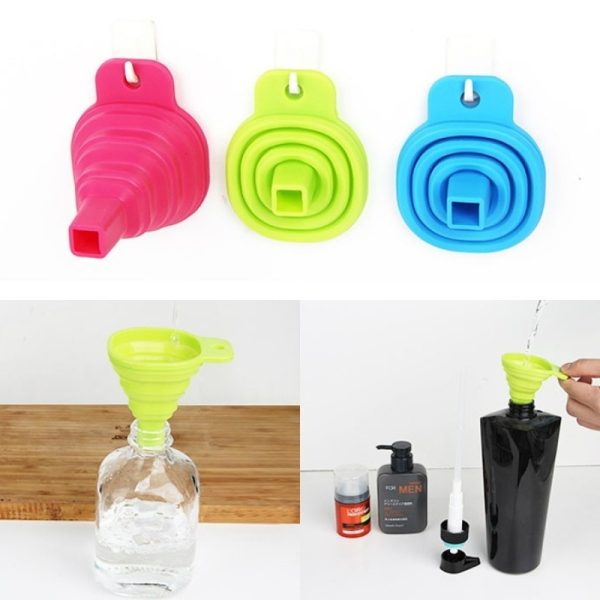 – Để rót các loại dung dịch lỏng khác nhau mà không bị vương ra ngoài thì bạn cần phải chọn mua một chiếc phễu. Phễu rót nước Silicon gấp gọn của thương hiệu NIHESHI Nhật Bản được thiết kế độc đáo với miệng phễu rộng, cuống phễu khi rút dài đến 7cm giúp bạn rót các loại dung dịch lỏng không bị trào ngược quai lại.