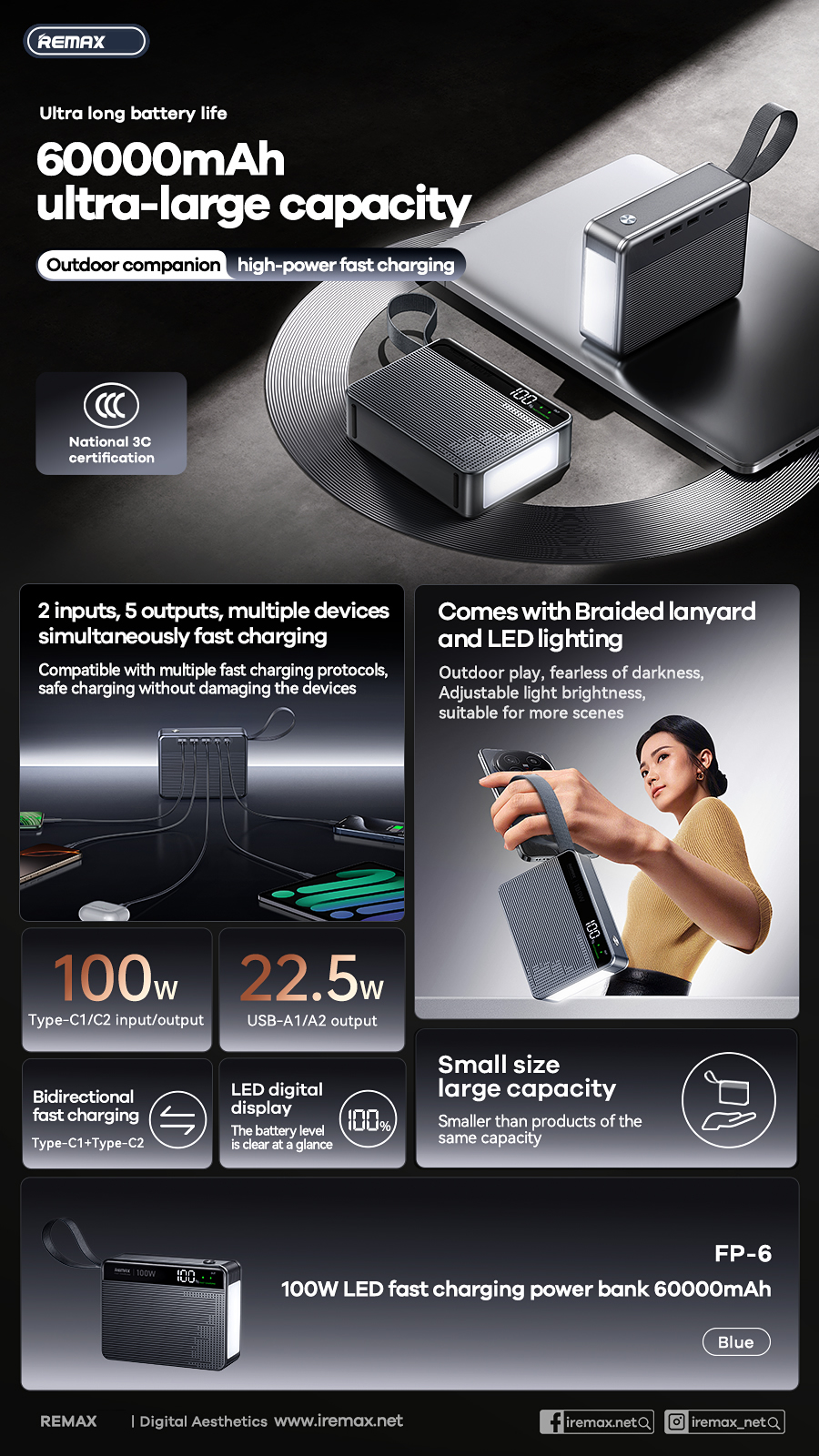 Pin Dự Phòng Sạc Nhanh 100W Remax FP-6 60.000mAh. (đặt trong ngày)