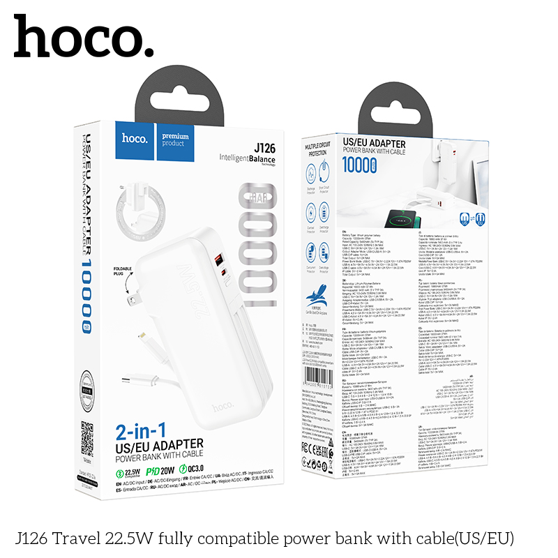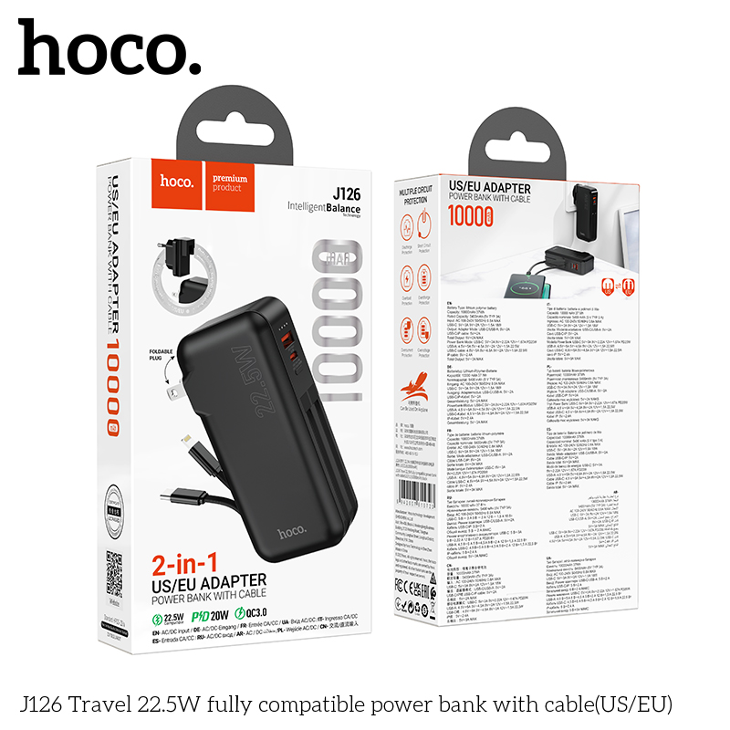 Pin Dự Phòng Sạc Nhanh 22.5W Hoco J126 10000mAh Cáp Lightning/Type C///DL