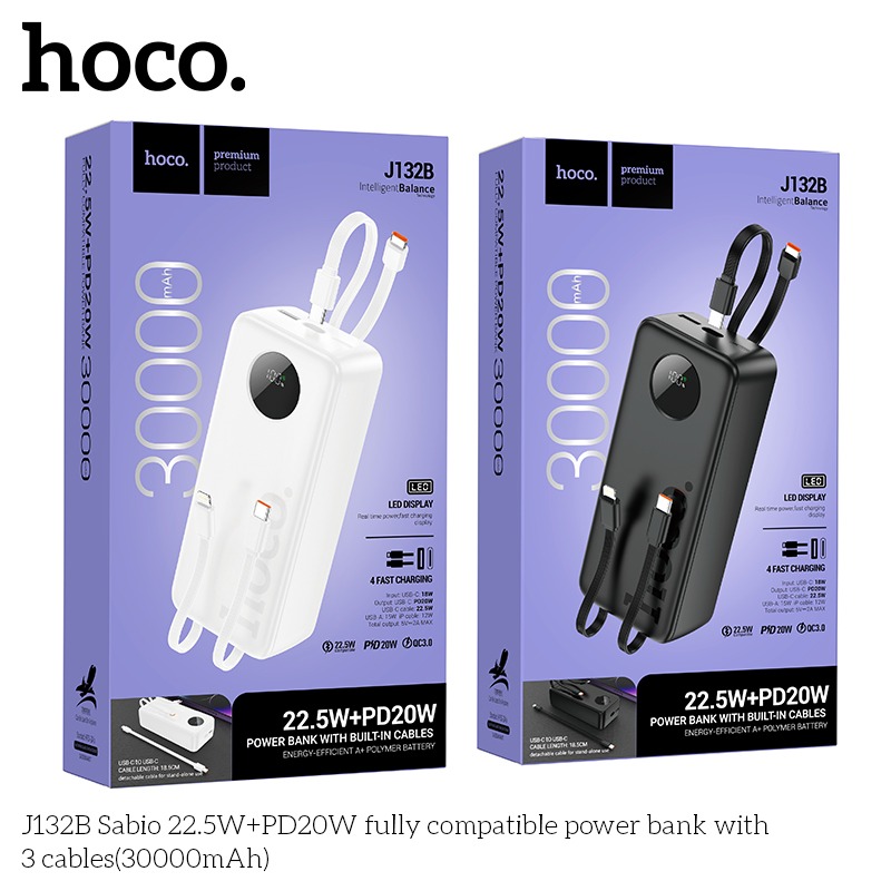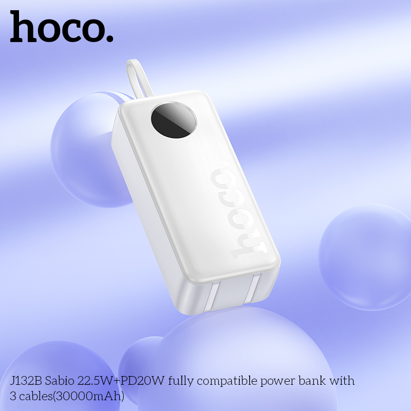 Pin dự phòng Hoco J132B 30000mAh TypeC PD 20W, Cáp TypeC 22.5W, kèm cáp C to C